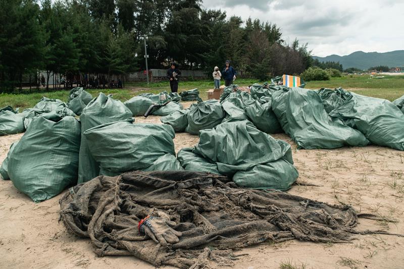 Địa điểm dọn biển năm nay là bãi biển Phước Tỉnh (Long Hải, Bà Rịa – Vũng Tàu), được biết đến là khu vực chịu nhiều tác động từ hoạt động đánh bắt cá, để lại lượng lớn rác thải nhựa như bao ni-lông, lưới đánh cá, thùng xốp… mắc kẹt sau mỗi đợt thủy triều, gây nên tình trạng “ô nhiễm trắng” đáng báo động.