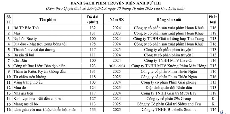 Lễ Bế mạc và Trao giải thưởng: 20h00, ngày 25/11/2025; Truyền hình trực tiếp trên đài HTV – Đài Phát thanh – Truyền hình Thành phố Hồ Chí Minh.Đ